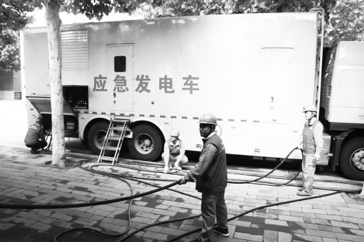 德州二中应急发电车准备就绪。 通讯员 王衍 摄