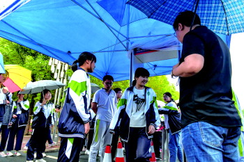 看着学生们忐忑的表情,现场一位负责考务的老师安慰学生:“大可不必过于紧张,只要不携带违禁品,文明参加考试,一切都不是问题。”