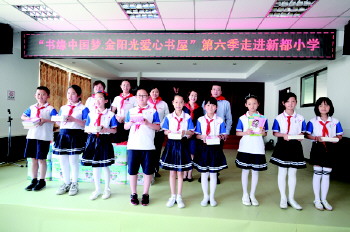 5月29日,新都小学迎来威海金阳光集团“书缘中国梦—金阳光爱心书屋”第六季活动,为孩子们送去了美好的六一礼物——书籍。 (崔丽文)