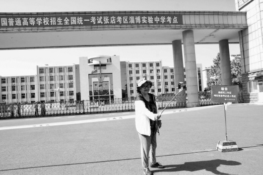 83岁的赵素梅在用镜头记录高考。 齐鲁晚报·齐鲁壹点记者 胡泉 摄