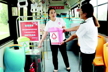 为加快垃圾分类投放、分类收集、分类运输、分类处理,方便综合回收利用,日前,交运温馨巴士770路、775路、776路等多条线路配备了垃圾分类桶,高新区分公司与蓝色硅谷分公司利用车厢展板等方式展示垃圾分类的详细方法,方便乘客根据垃圾的性质分类投放,共同为改善生活环境作努力,为绿色发展、可持续发展作贡献。