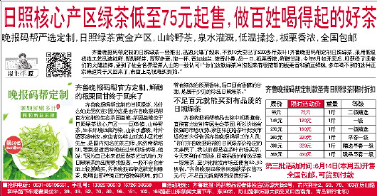 齐鲁晚报码帮定制款圣青日照绿茶限时折扣