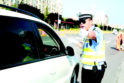 两考期间,长清交警检查考点周边过往车辆。 交警供图