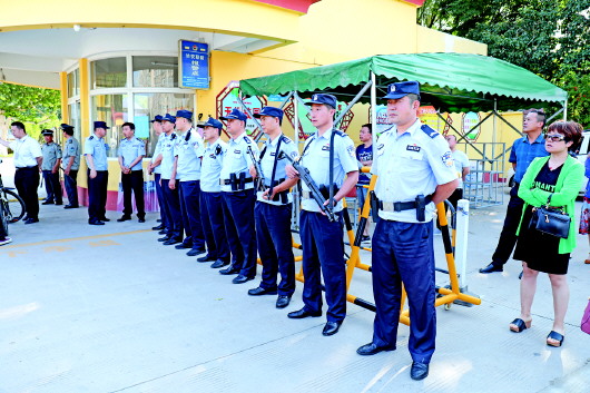 2019年长清区全国高等院校招生统一考试、初中学业水平考试分别于6月7日至8日、6月11日至14日在长清一中、长清中学、长清第一初级中学等考点进行,全区共有13000余名考生参加考试。为完成两考安保任务,为广大考生提供安全稳定的考试环境,长清区公安分局提前部署、科学用警,组织治安、巡警、交警和部分派出所,按方案分工各负其职,同时与教育、城管、环保等部门密切配合通力协作,圆满完成2019年度辖区中高考安全保卫工作。 通讯员 费聿凡 摄