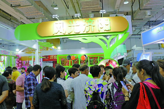 工作人员向参观者推介济阳旅游。