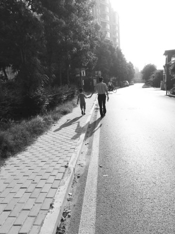 丈夫小张鲜有地送儿子上幼儿园,木子偷偷拍下这张照片。