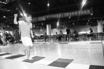 16日,值父亲节当天,济宁科技馆联合安利济宁分公司在科技馆展厅开展了“厉害了,我的爸”亲子训练营活动。新颖有趣的亲子互动游戏、丰富精彩的奖品吸引了近200位爸爸携子女参加。“疯狂指压板”、“快乐风火轮”、“快乐向前冲”、“萝卜蹲”、“电动马达臀”等游戏趣味十足,在孩子们的加油声中,爸爸们拼尽全力让孩子感受到“爸气十足”的父爱,增进了亲子感情。 齐鲁晚报·齐鲁壹点记者 于伟 通讯员 董斌 摄