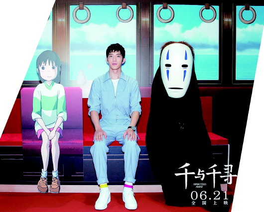 首映礼上,出品方吉卜力社长星野康二,电影中文配音演员井柏然、彭昱畅、田壮壮、王琳等与观众见面。在红毯上,井柏然和彭昱畅用剧中角色名签下自己的名字“井白龙”、“彭无脸”。井柏然现场用《千与千寻》经典台词喊话“千寻”中文配音者周冬雨——“不要吃了,会变成猪”。彭昱畅则现场化身无脸男。影帝黄渤更惊喜现身红毯,现场配音经典台词,更温暖表白电影“我们小时候都在千寻这个梦里呆过”。