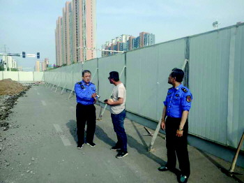 近日,潍坊市城管执法支队市政设施执法大队在日常执法巡查中发现玉清街北海路口以西路北和健康街向阳路以西道路中央搭建围挡内正在施工,执法人员对施工现场进行了全面检查,工地有部分裸露渣土未采取防尘措施,依据《山东省城市容貌和环境卫生管理条例》第二十三条第一款第(三)项之规定,当日分别向两家施工企业下达了《责令停止违法行为通知书》和《限期改正通知书》,明确要求施工企业边施工边覆盖,不使用的渣土坚持日产日清,后续将跟踪检查。