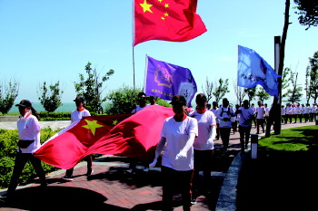 活动一开始,公园内响起愉悦的歌声,“我和我的祖国,一刻也不能分割。无论我走到哪里,都流出一首赞歌……”两百余名参与活动的运动健儿现场演唱,吸引了市民和游客自发集体动情合唱《我和我的祖国》,一时间,悠长熟悉的旋律回荡在整个公园。合唱结束后,随着一声令下,参与活动的运动健儿按照比赛路线冲出起跑线,一路上队伍整齐有序,步伐坚定有力,长长的队伍在海边成了一道亮丽的风景线。