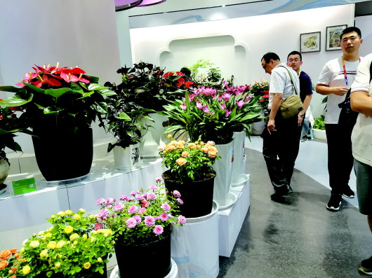世园会“山东省日”室内展区中,花卉争奇斗艳。