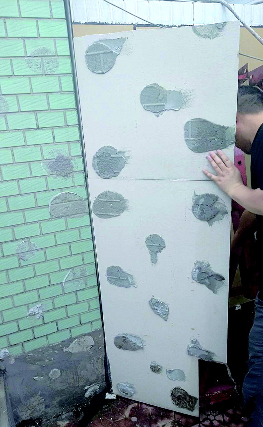 说到吊篮碰下来的保温板,他告诉记者,在用砂浆粘合之后,保温板和墙面之间要超过24小时才能固定好,要三天三夜才能完全牢固。“吊篮碰下来的保温板,是因为还没有完全固定好。”