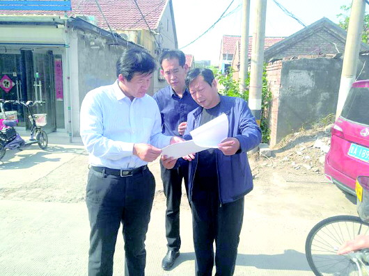 商河县市场监督管理局局长车富春(左一)带队进行网格创卫走访。