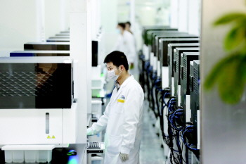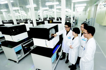 华大基因科研人员在实验室进行基因检测工作。