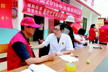 为促进广大村民身心健康,弘扬新时代志愿服务精神。6月13日上午,莒县人民医院携健康查体车前往城阳街道东汪上村开展“新时代文明实践志愿服务队”健康扶贫2019义诊活动。此次活动由理事长马德鑫、副院长徐常东带队,医务科组织神经内科、呼吸内科、肛肠外科、内分泌科、中医科、放射、心电图等各专业科室医护人员参加。