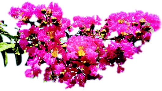 紫薇是一种乔灌木,枝桠比较开散,即使是贫瘠的土地也能养活。紫薇花序硕大繁茂,花色丰富,色彩鲜艳,花期为每年的六月至九月底,花期较长,故又名“百日红”。它还是植物界的“清理工”,有一定的防霾、抗污染的功效,不仅能吸收二氧化硫、氯气和氟化氢等有害气体,同时具有降尘作用。