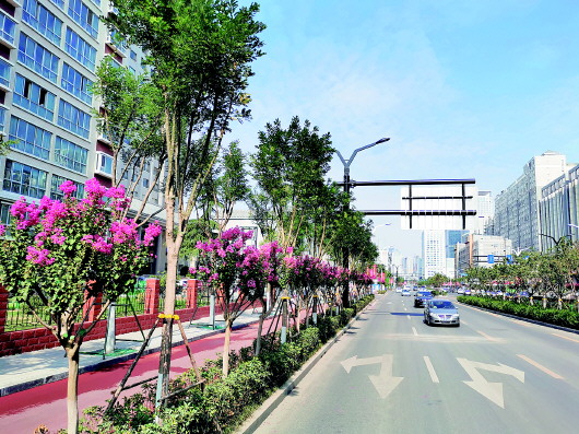 历下区园林绿化中心工作人员告诉记者,解放东路紫薇花今年三月份开始栽植,从二环东路一直到奥体中路,东西长大约4.2公里。“目前共栽植紫薇花1623棵,六月初开放,现在是最茂盛的时候,是济南长度、体量、规模最大的紫薇花路。”