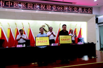 25日,菏泽市中医医院召开庆祝建党98周年党员大会,该院外科支部、总务后勤支部获得先进党支部称号,王巧荣、王体敬、李晓虎等16人获得优秀共产党员称号,并现场进行表彰。表彰结束后,在医院党委书记郝敬忠的带领下,全院党员重温入党誓词。