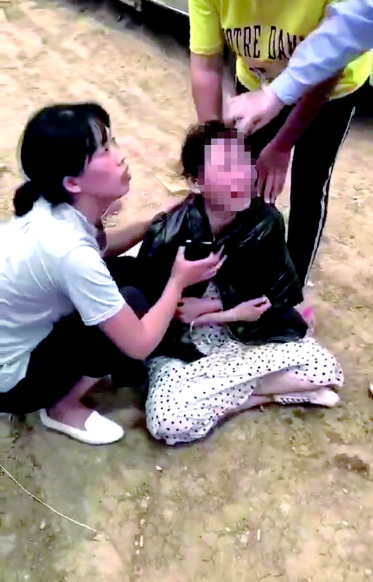 女孩被救上岸时,因受到惊吓,情绪激动,哭了起来,大家正在安慰她。