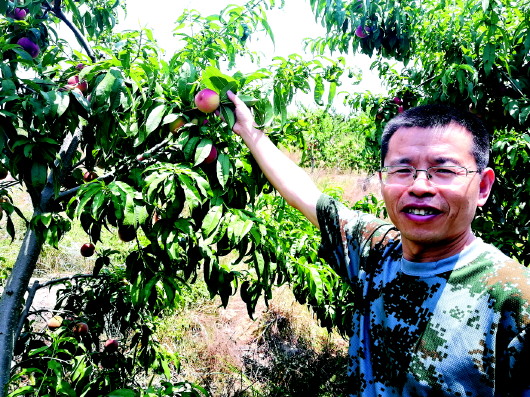 老薛人很朴实,见人笑嘻嘻,特别实在,一笑满脸都是褶子。人虽长得不如桃子好看,但是他会侍弄地,在这里包了几百亩地种桃子,是个种桃子的土专家,他能让桃长得好看又好吃。这是个大本事。他一方面自学成才有一定基础,另一方面也经常参加区农广校的培训,开拓视野,取长补短,学到的东西越来越多。