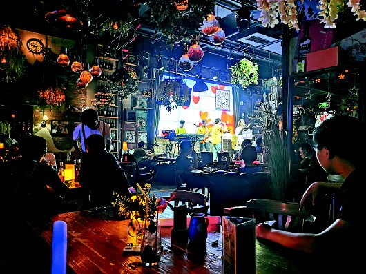 6月26日晚10点,胡桃里音乐酒吧里已是一座难求,这里将音乐、美食、美酒、表演融于一体,成为比酒吧更具文化氛围的丰富夜生活形式。酒吧经理蒋先生介绍,胡桃里打造的是一种文艺范,吸引了不少白领和文艺青年,“尤其是上班族下了班,累了来喝点小酒,听听音乐,我们提供超15小时的娱乐生活模式,一般每天都要营业到凌晨2点多。”