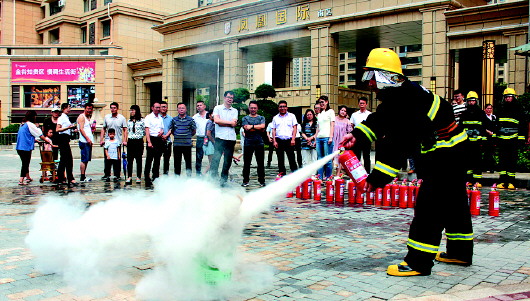 本报6月27日讯(记者 修从涛) “凤凰国际南区底商发生火情,过火面积200多平方米,有业主被困,情况危急,请速救援……”6月20日上午9点半,凤凰国际南区传来“火情”,一场由东拓置业和济高绿城物业主办的消防演习正式开始。