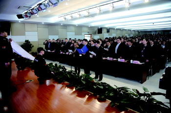 在去年的集团年创新发展大会上,在党委倡议下,由党委书记主持、董事长领宣,200多名员工面对集团旗帜举行庄严的入职宣誓,并在“入职誓词”上签名,增强了集团公司的凝聚力。