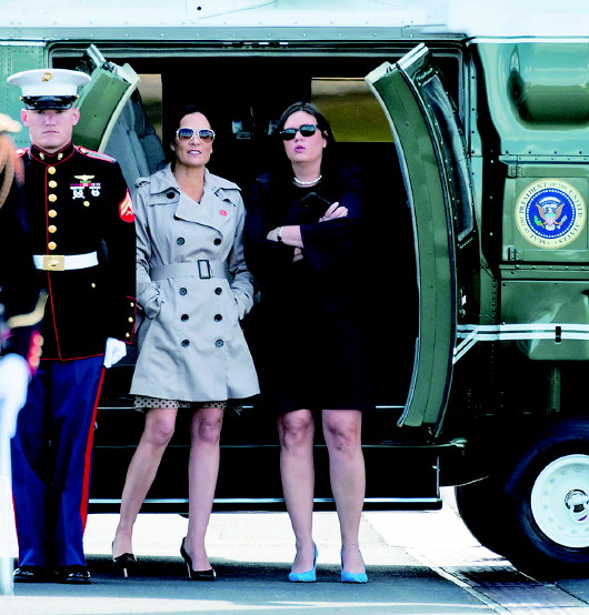 斯蒂芬妮·格里沙姆和前任白宫新闻发言人莎拉·桑德斯(右)。