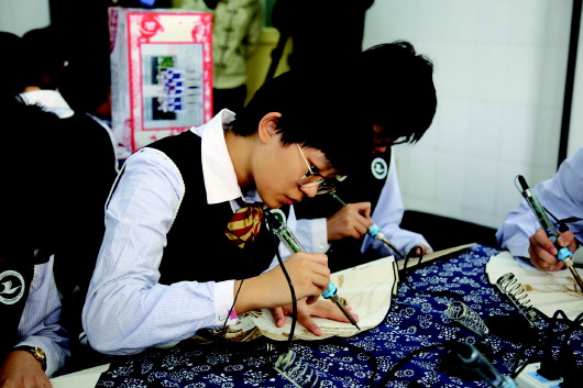 学生在进行烙画