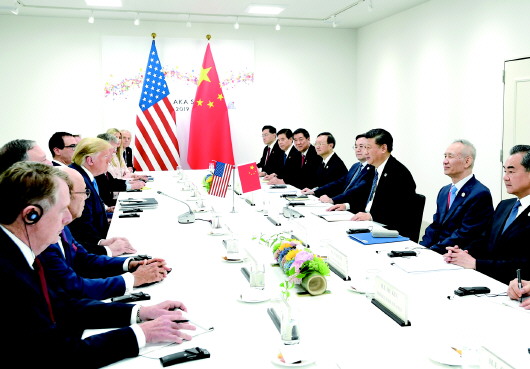 29日,国家主席习近平同特朗普在大阪举行会晤。 新华社发