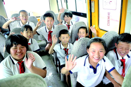 能乘坐校车回家,归德街道国庄小学的孩子们都乐开了花。