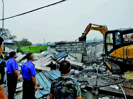 6月28日,天桥区城管局泺口中队冒雨拆除违建。 天桥城管供图