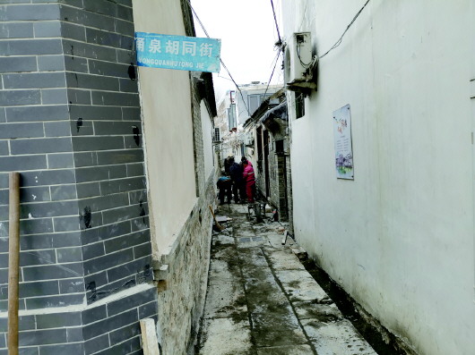 专业人员对老街巷涌泉胡同进行保护性改造。