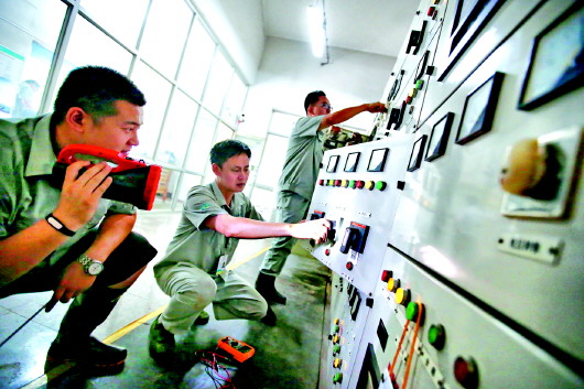 党小组就是一个堡垒。在加压供水管理部,党小组长朱建强带领员工正在设备检修。 济南水务集团供图