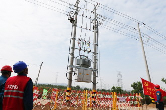 党旗飘扬在电网建设现场
