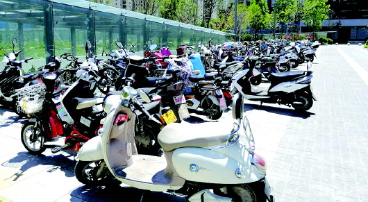 1日上午,记者在中建锦绣广场写字楼东侧看到,近二百辆电动车停放在此,前后停放了三排。