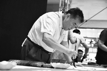 书法家在义卖现场挥毫泼墨。