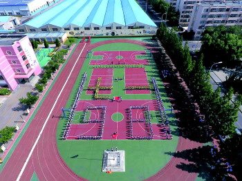 早上,由学生方队组成的“七一”、“98”和玉龙社区党员精心绣制的党旗组成的造型已经完成。活动在两位小主持人激情洋溢的开场白后拉开了帷幕。首先,500余名幸福学子进行口风琴齐奏《共产儿童团歌》,顿挫有致的节奏,贯穿整首歌曲,给人一种威武的进行曲感受。