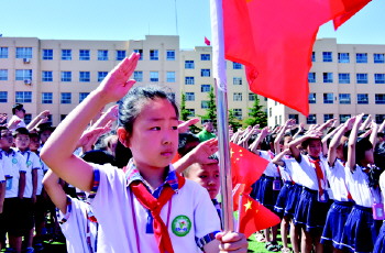 童心向党活动 近日,沂源县沂河源学校举办了“传承红色基因·七一童心向党”升国旗唱红歌活动。展现了同学们朝气蓬勃的青春力量。(周建国)