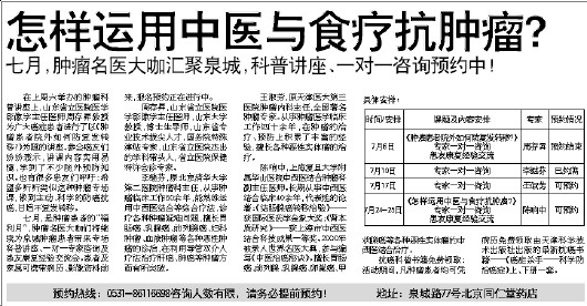 七月,肿瘤名医大咖汇聚泉城,科普讲座、一对一咨询预约中!