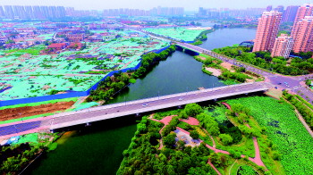 至早上9点左右,经康庄路桥来往赵王河东西两岸的行人和车辆越来越多,记者了解到,康庄路向东连接城市主干道——人民路,向西贯通内城的太原路、青年路等主要干道,而周边又没有直通的桥梁,所以康庄路桥承担的交通作用不言而喻。且与提升改造后的黄河路、天香路桥形成了四通八达的道路交通网,空中俯视两座桥,像是“人”字横跨赵王河,此处又将是菏泽一大靓丽的风景线。