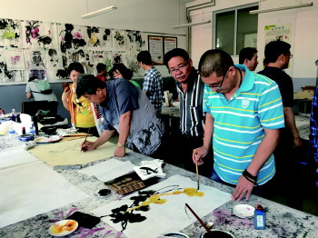 颐和社区邀请邀请数十位书画家及书画爱好者走进白沙滩镇中心学校开展“不忘初心、牢记使命”书画笔会活动,现场书画老师挥毫泼墨、笔走龙蛇,用笔墨呈现出对我党的忠心祝愿和对美好未来的翘首以盼。此次书画会促进了书画文化的交流与传承,弘扬了中国传统书画文化及新时代社会主义文明新风尚。