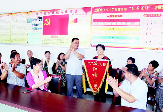 德州市庆云县中丁乡中丁村党支部量化积分红黄蓝榜。(资料片)