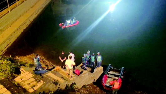 晚上10点58分,一溺水者被打捞上岸。一位现场工作人员称,他们是通过声呐系统确定了该溺水者的位置。其余两位溺水者还在搜寻中。