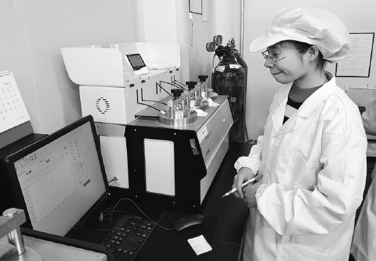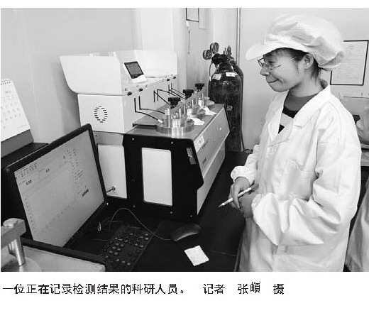 一位正在记录检测结果的科研人员。 记者 张頔 摄