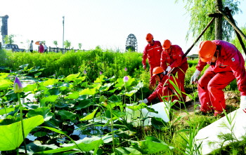 自景区开建以来,滨南采油管理区清洁生产管理面临着巨大压力。薛洋说,十里荷塘是黄河滩区改建而成的城市休闲景区,荷塘面积达500亩,花海区种植油葵面积700亩,滨南采油管理区有16口油水井坐落在景区内。
