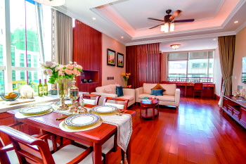 公寓内的地面均采用防滑地板,室内地面是无高差设计。公寓内配备中央空调,顶面安装吊扇灯,增加空气的流通,减缓空调制冷对身体的不适。