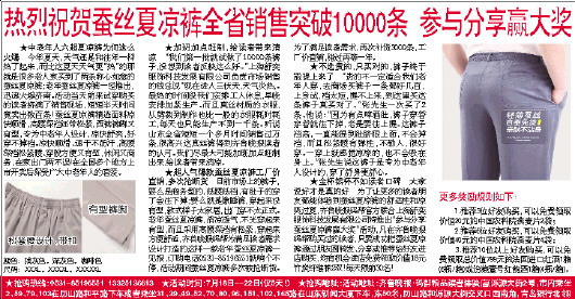 热烈祝贺蚕丝夏凉裤全省销售突破10000条 参与分享赢大奖