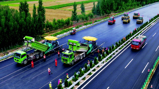 滨莱高速正在进行沥青铺设作业。 本报记者 王瑞超 摄