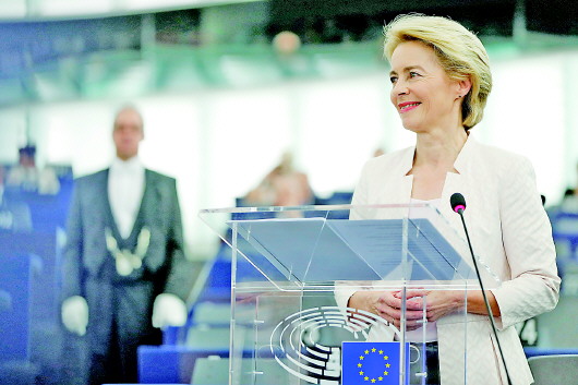 7月16日,在法国斯特拉斯堡,冯德莱恩在欧洲议会发表演讲。 新华/美联